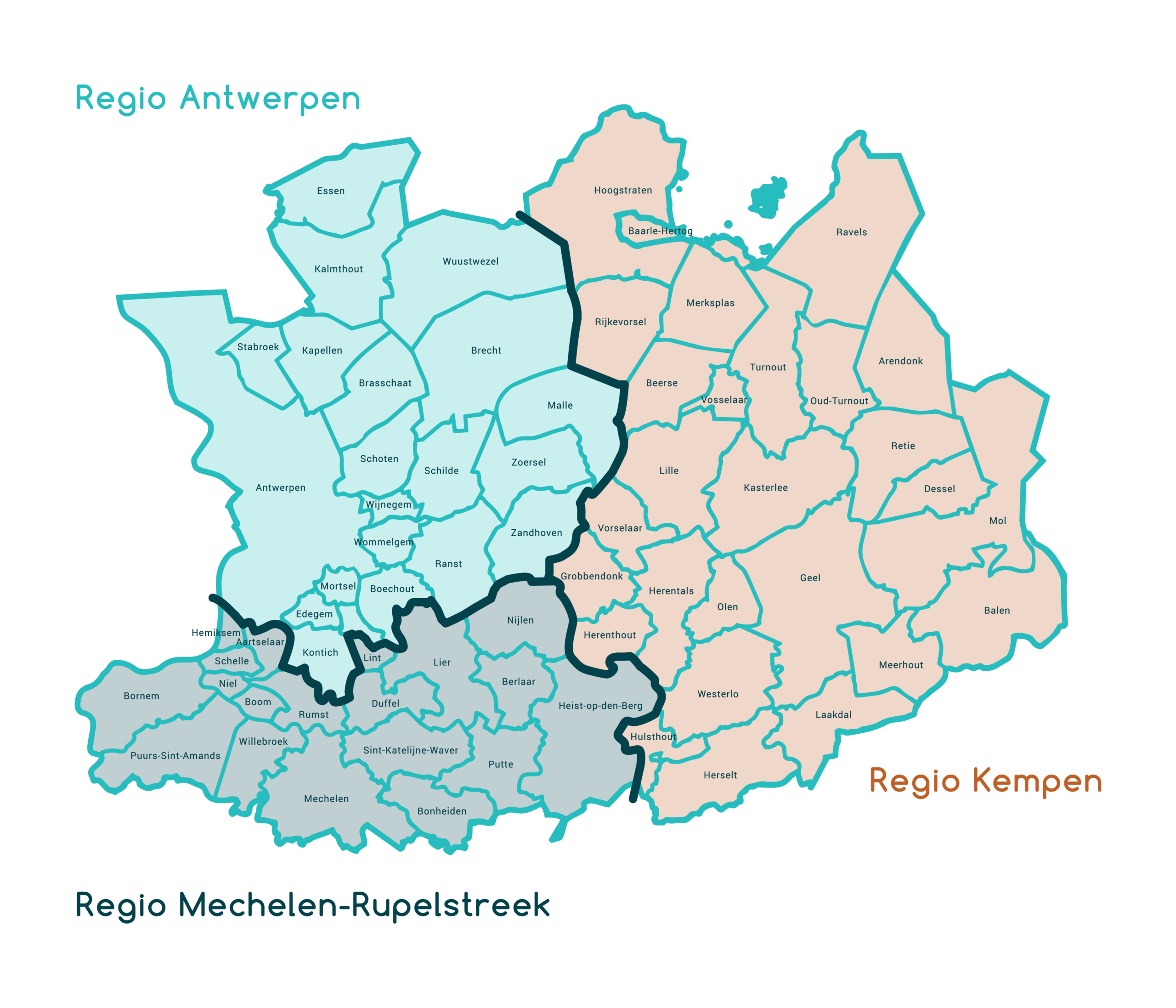 Opgelet! Vanaf januari 2025 hoort Ranst bij regio Antwerpen. Kontich en Lint behoren bij regio Mechelen-Rupelstreek.